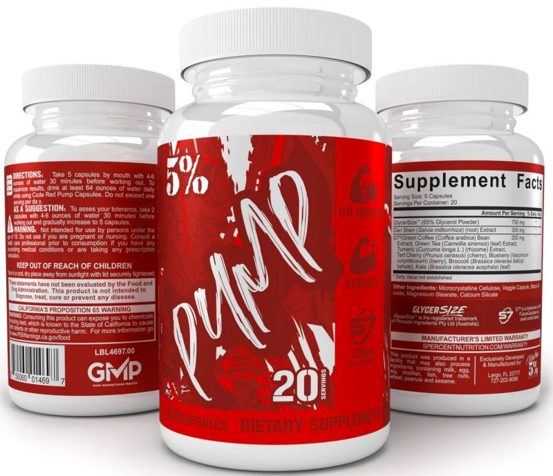 Enter 5% Pump Caps with S7! Our powerful pump formula features S7, a patented and very effective 7-ingredient blend. This plant-based blend ignites the body's natural production of nitric oxide and lowers free radicals that can reduce nitric oxide levels. Many of the compounds in the S7 blend have potent antioxidant properties.